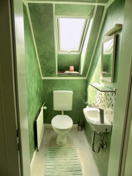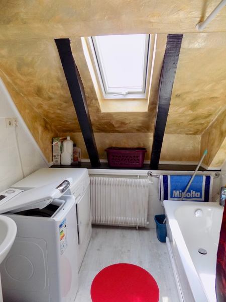Im 1. OG sind zwei weitere helle Zimmer, ein Tageslichtbad mit Badewanne und separatem WC.