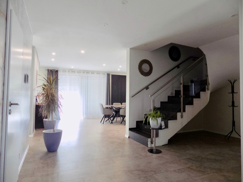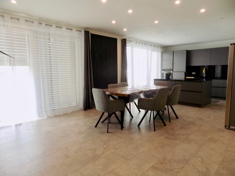 Das Herzstück des Hauses ist seine offene Gestaltung, die für ein helles und freundliches Wohnambiente sorgt. Die hochwertige Ausstattung und der neuwertige Zustand garantieren einen Einzug ohne Kompromisse. Besonders hervorzuheben ist das komfortable Gäste-WC sowie die einladende Terrasse, die zum Entspannen und Genießen im Freien einlädt.