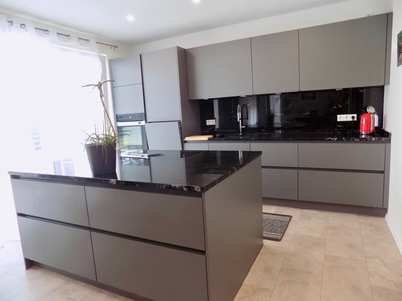 - neuwertige Einbauküche mit Arbeitsplatte aus Naturstein